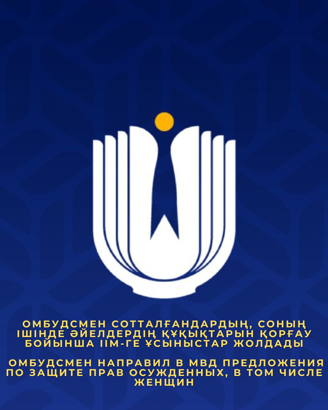 Уполномоченный по правам человека Артур Ластаев направил на имя Министра внутренних дел Ержана Саденова рекомендацию с предложениями по вопросам применения условно-досрочного освобождения и замены наказания, а также улучшения условий отбывания наказания осужденных женщин.